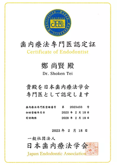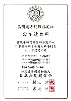 当法人には歯を残すスペシャリストである、日本歯周病学会「専門医」、日本歯内療法学会「専門医」が在籍しています。これらの資格は歯科医師の「上位資格」となりますので、厳しい審査を通過した歯科医師のみが取得できる資格になります。どうしてもあなたの大切な歯を残したい方、まずはご相談ください。