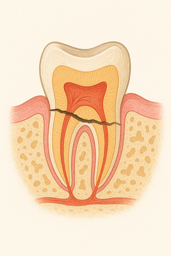 歯の根が割れてしまう状態を「歯根破折」といいます。